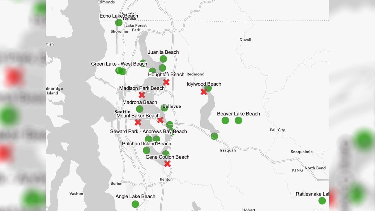 KING COUNTY, Wash. - Health officials have closed several beaches in King County because of unsafe bacteria levels.