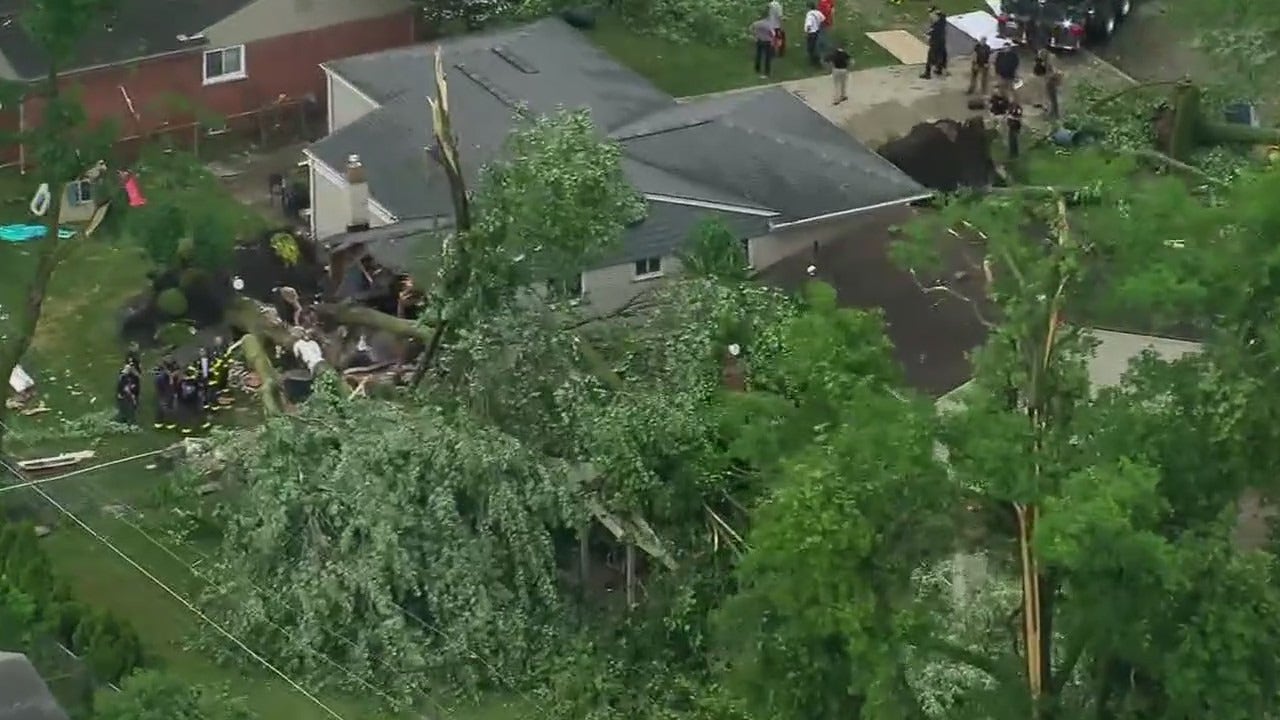 The child was in a back bedroom of a home on Houghton Street near Nola with his mother when the tornado knocked a tree onto the home around 3:30 p.m. Crews spent about an hour cutting up the tree as they worked to free them from the home.