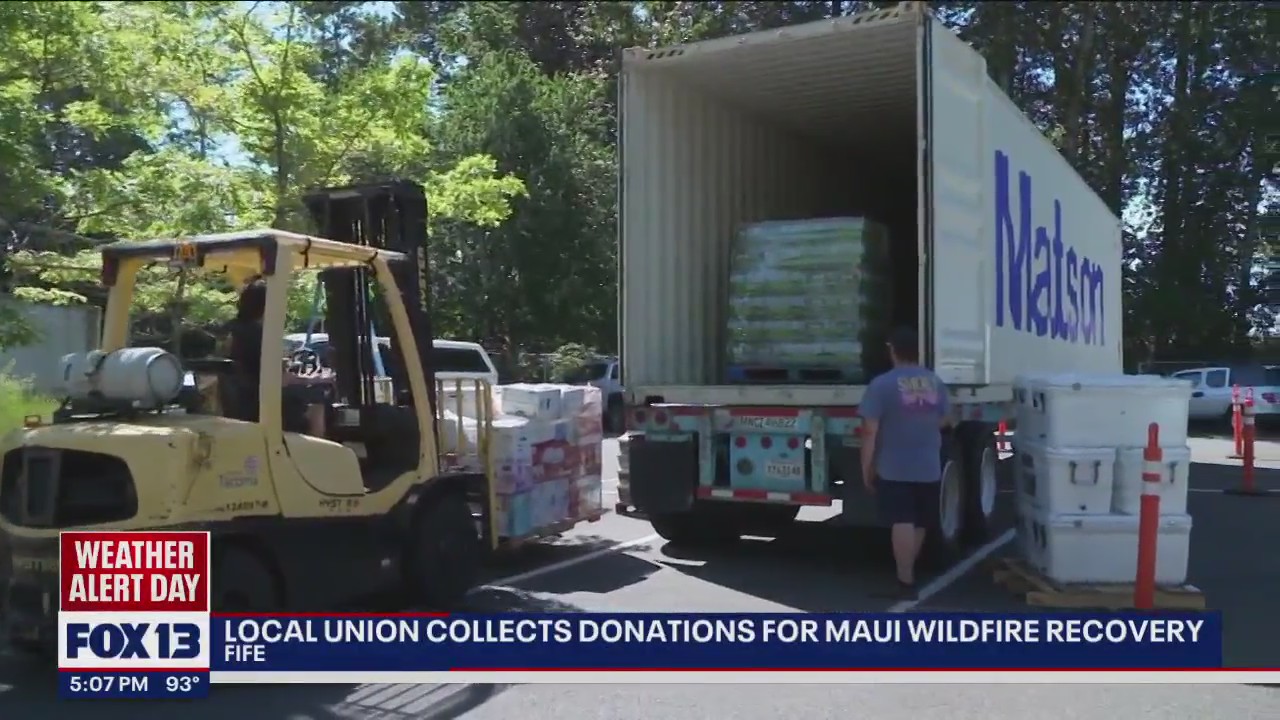 The local chapter on Monday started collecting donations at its headquarters in Fife. The amount of donations quickly filled up one shipping container, requiring crews to get a second container. The union is partnering with area companies to ship both containers from the Port of Tacoma.