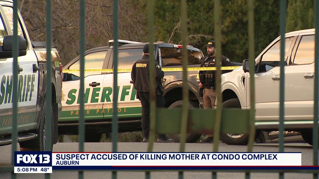 Court documents claim the 30-year-old man arrested in an Auburn homicide investigation killed his mother inside a condo on Tuesday.