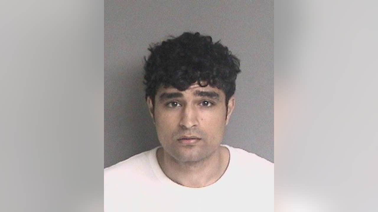 Param Sharma is seen in this booking photo from the Santa Rita jail where he was held for riding in the backseat of a driverless Tesla