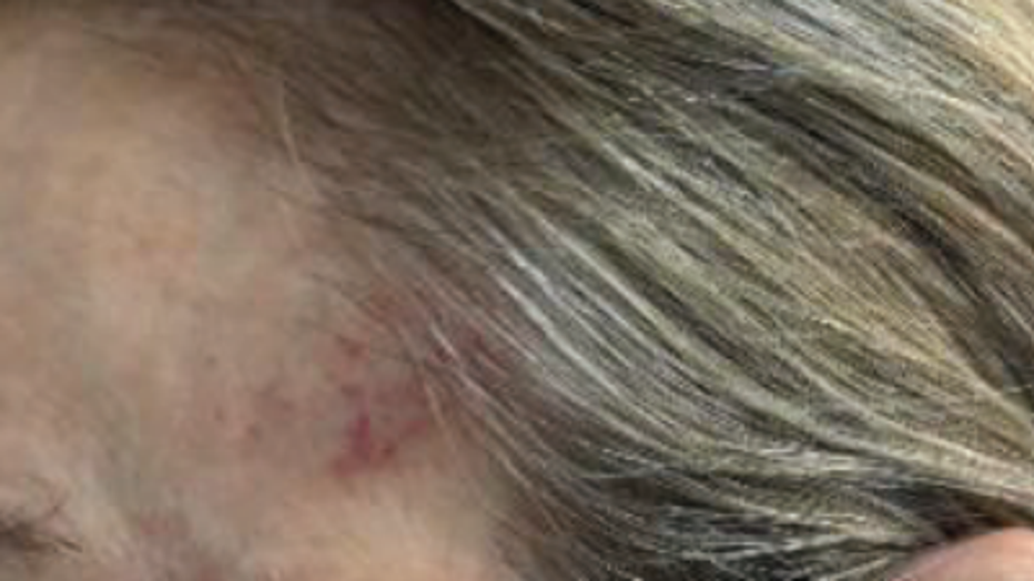 When his wife ran to his aid, court documents state Blair briefly strangled her. Her injuries are pictured below.