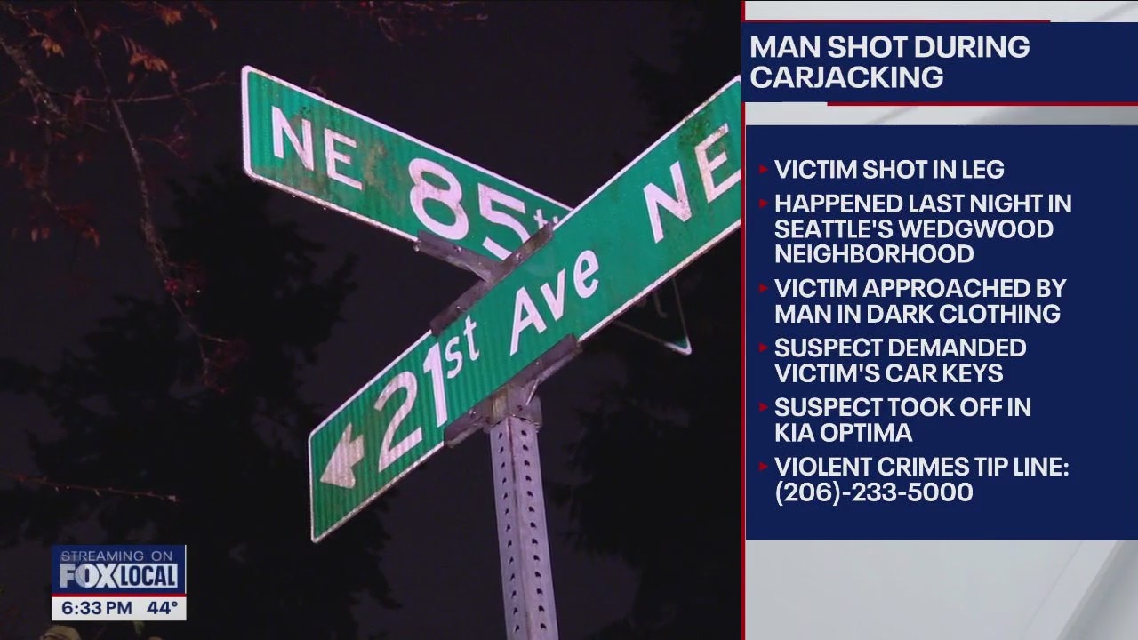 SEATTLE - Police are investigating after a man was shot during a carjacking in Seattle’s Wedgwood neighborhood Monday night.