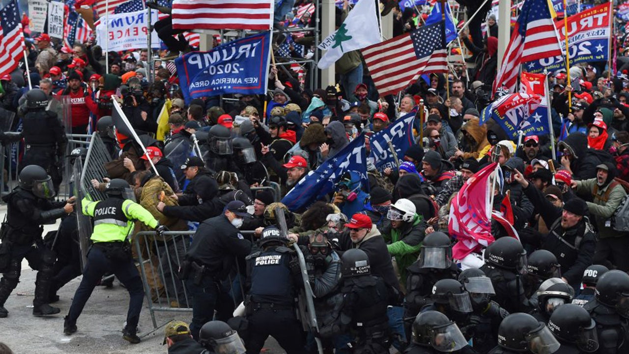 FILE - Trump supporters clash with police and security forces as they push barricades to storm the US Capitol in Washington D.C on Jan. 6, 2021. ( ROBERTO SCHMIDT/AFP via Getty Images)