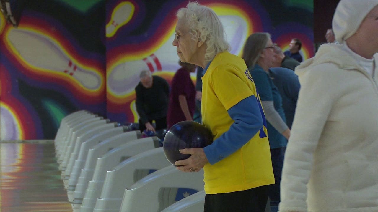 Marie competes with a league at Westgate Bowl every Wednesday. She averages 120. Marie's son, Jerry, also bowls on the team. He joined when another member died seven years ago.