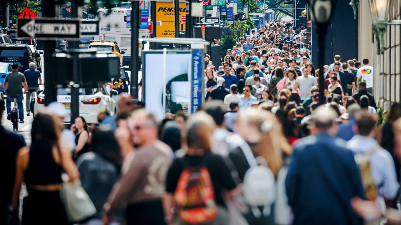 FILE - People walk on the sidewalk along Fifth Avenue on Sept. 16, 2023, in New York City. (Photo Thomas Trutschel/Photothek via Getty Images)