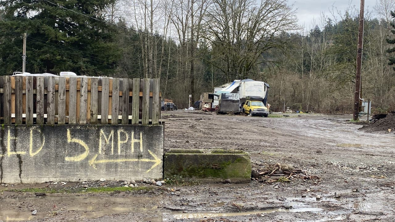 'Muddy mess': Pierce County, WA RV park residents continue flood clean-up