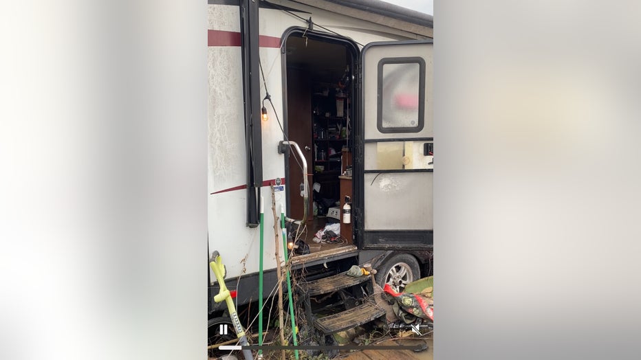 The mud could still be seen in the trailer on Sunday when FOX 13 crews visited the park.