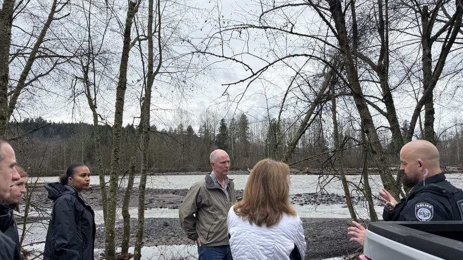 Governor Bob Ferguson visited the Orting area Sunday morning. Representative Kim Schrier (WA-Dist. 8) was also touring hard-hit areas in Pierce County and Snohomish County, and credited first responders with saving lives.
