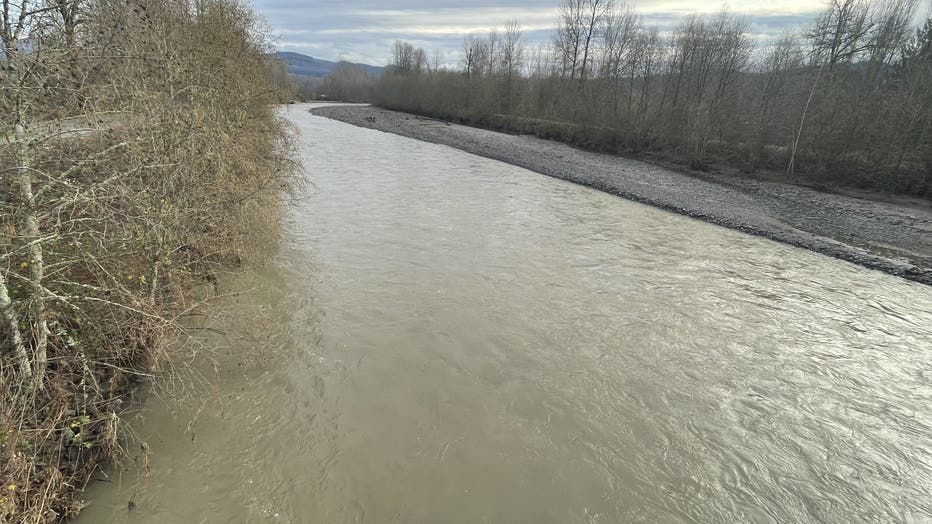 The muddy mess is shown in the picture below Sunday. The Puyallup River sits just beyond the RV parking area.