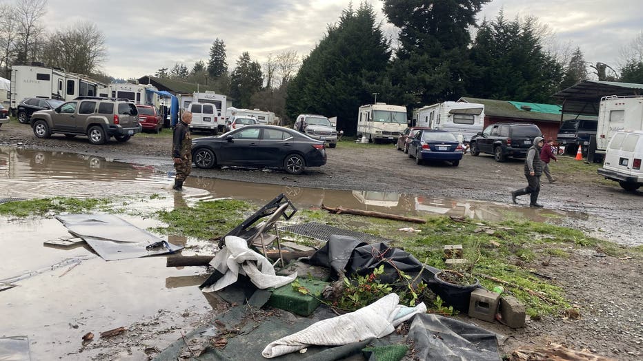 ORTING, Wash. - Residents at an RV park in Pierce County spent the day trying to salvage what they could after floodwaters swamped most of the trailers there last week.
