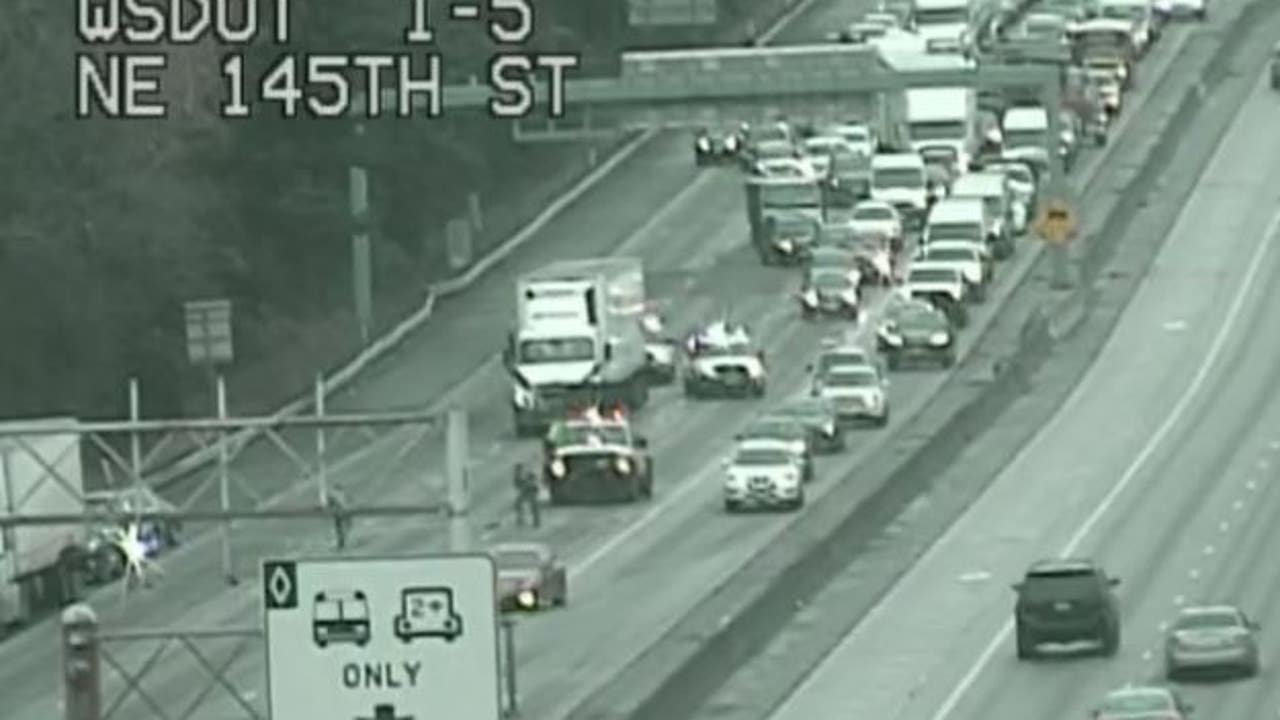 The crash happened around 9:00 a.m. near NE 145th St. and blocked all lanes. According to WSDOT, all but one lane had reopened by 9:40 a.m.