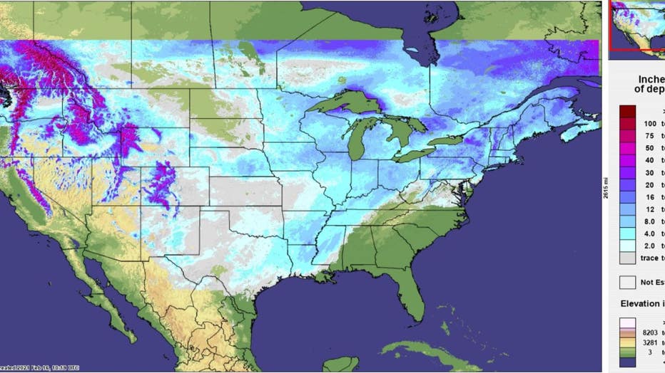 On Feb. 16, approximately 73.2% of the contiguous U.S. was covered in snow — which was the highest coverage area ever recorded in the database, which dates back to 2003, officials said. Few U.S. states were shown without snow cover, including Florida, Georgia and South Carolina.