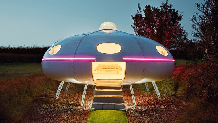 UFO Futuro-styled flying saucer in the United Kingdom. (Airbnb)