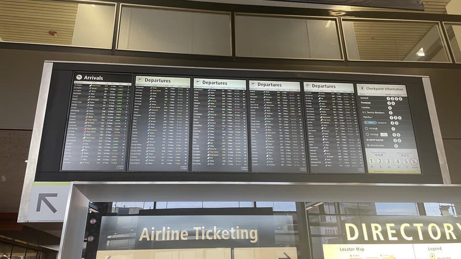 FlightAware also reported Sunday afternoon that around 70 flights were canceled in the last 24 hours at SEA Airport with flights down 5% compared to the same week in 2023.