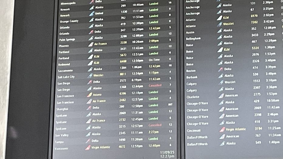 SEATTLE - Travelers are facing a third day of flight cuts across the U.S. as the government shutdown continues. The Federal Aviation Administration mandated airlines to cut down on 4% of their flights at 40 major airports in the country.