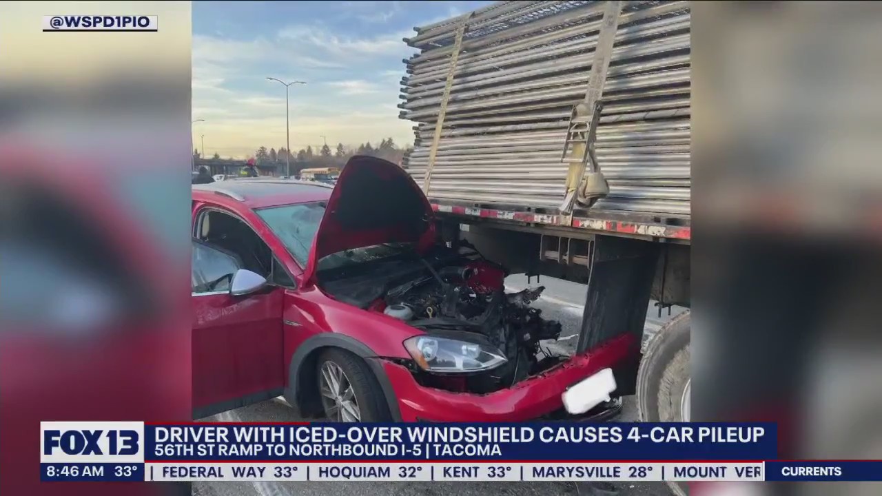 TACOMA, Wash. - Troopers say Thursday morning's four-car pileup on Interstate-5 in Tacoma was caused by a driver who did not properly defrost their windshield.