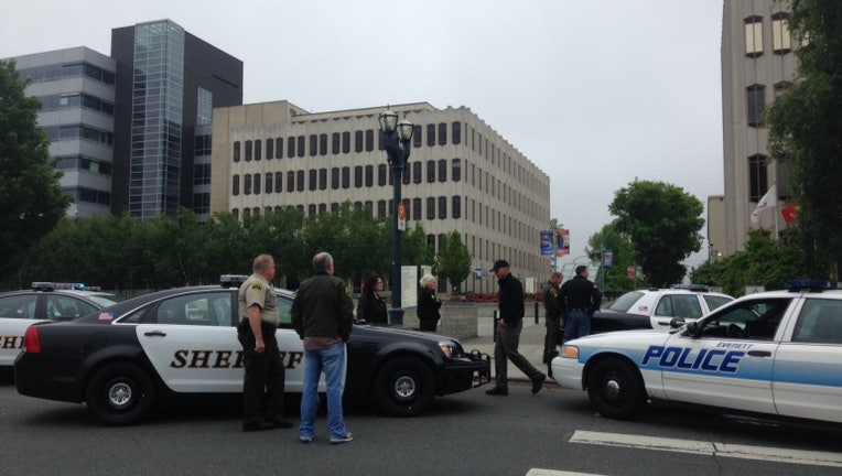 EVERETT, Wash. -- Officials say a man who prompted the evacuation of a Washington state courthouse has been arrested without incident about a mile away from the building.