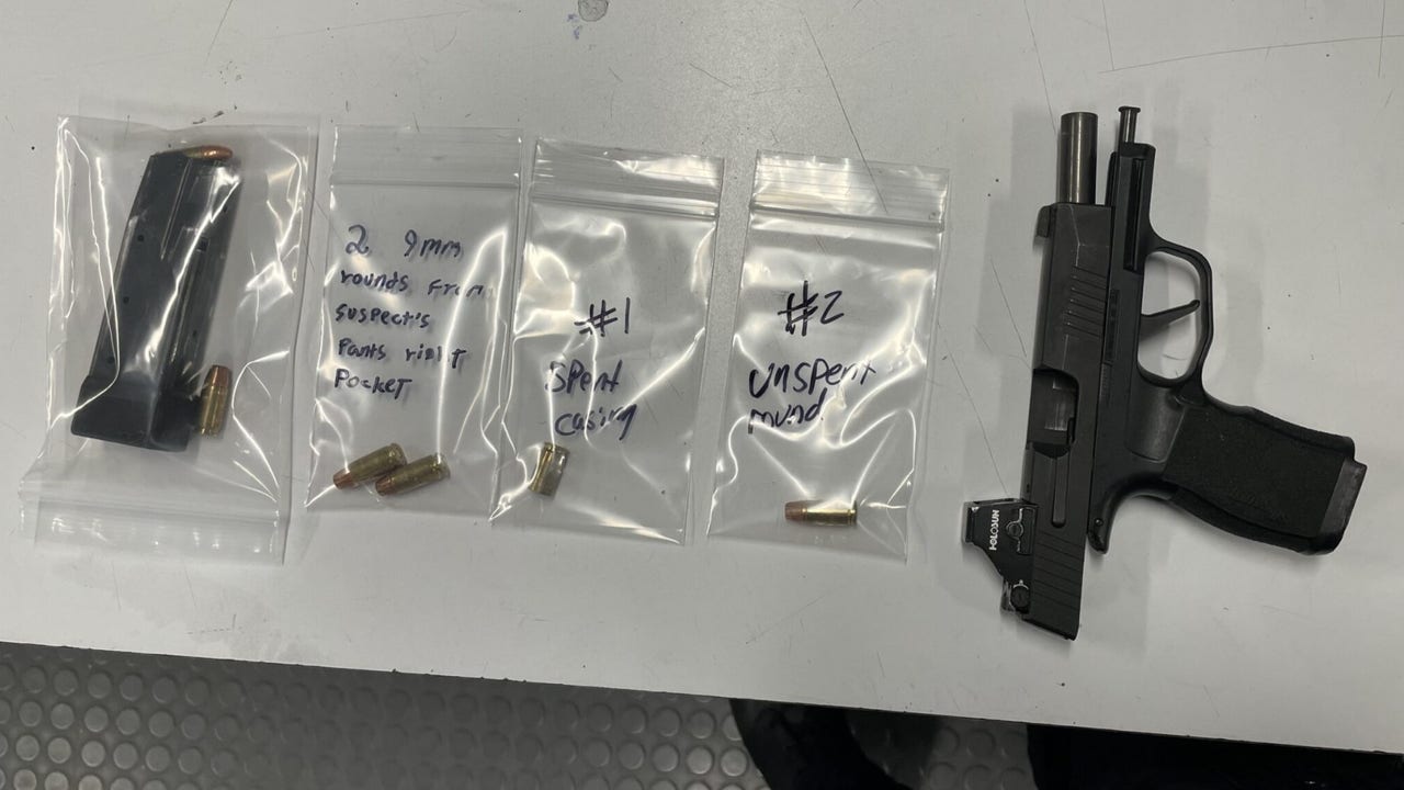 An arrest team was formed, and the suspect was found near the scene hiding between cars. The 22-year-old was arrested without incident, and a gun was recovered with ammunition. The victim was unharmed.