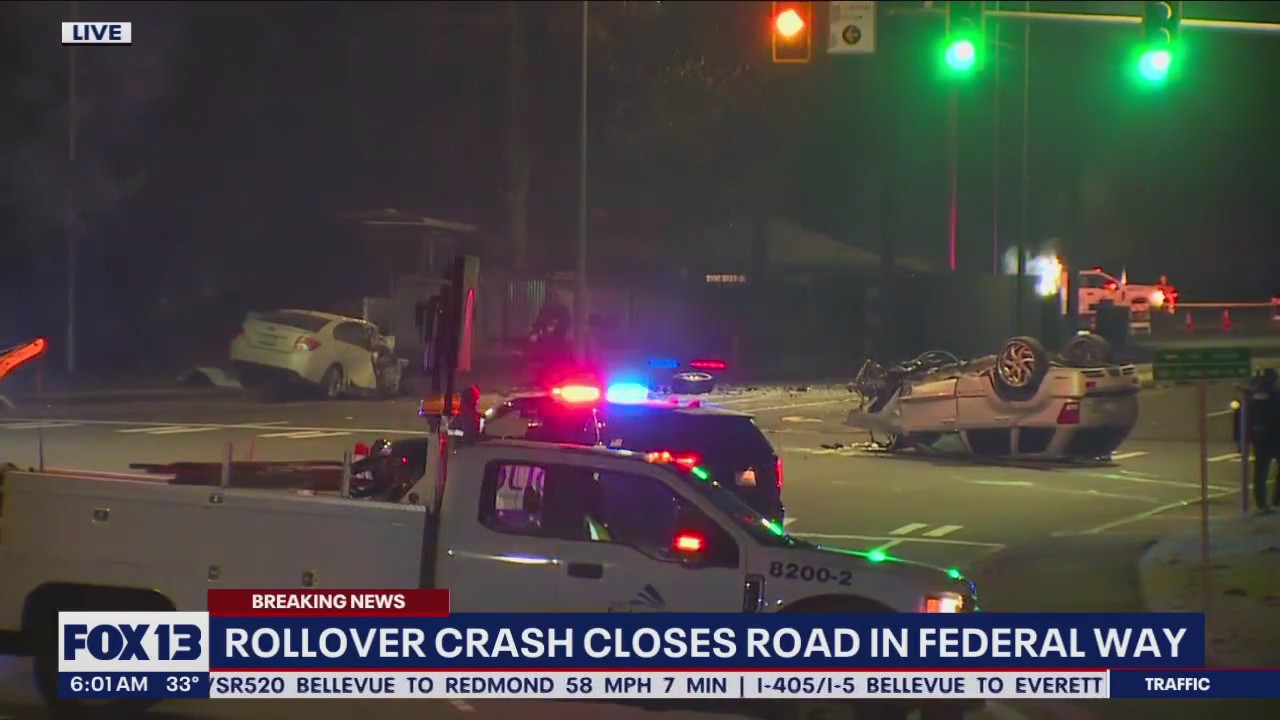 According to the Federal Way Police Department (FWPD), at around 2:00 a.m., officers responded to reports of a serious two-car crash near SW 356th St. and 8th Ave. SW. When officers arrived, they found an SUV laying upside down in the middle of the intersection, and a sedan with significant damage off the side of the road.
