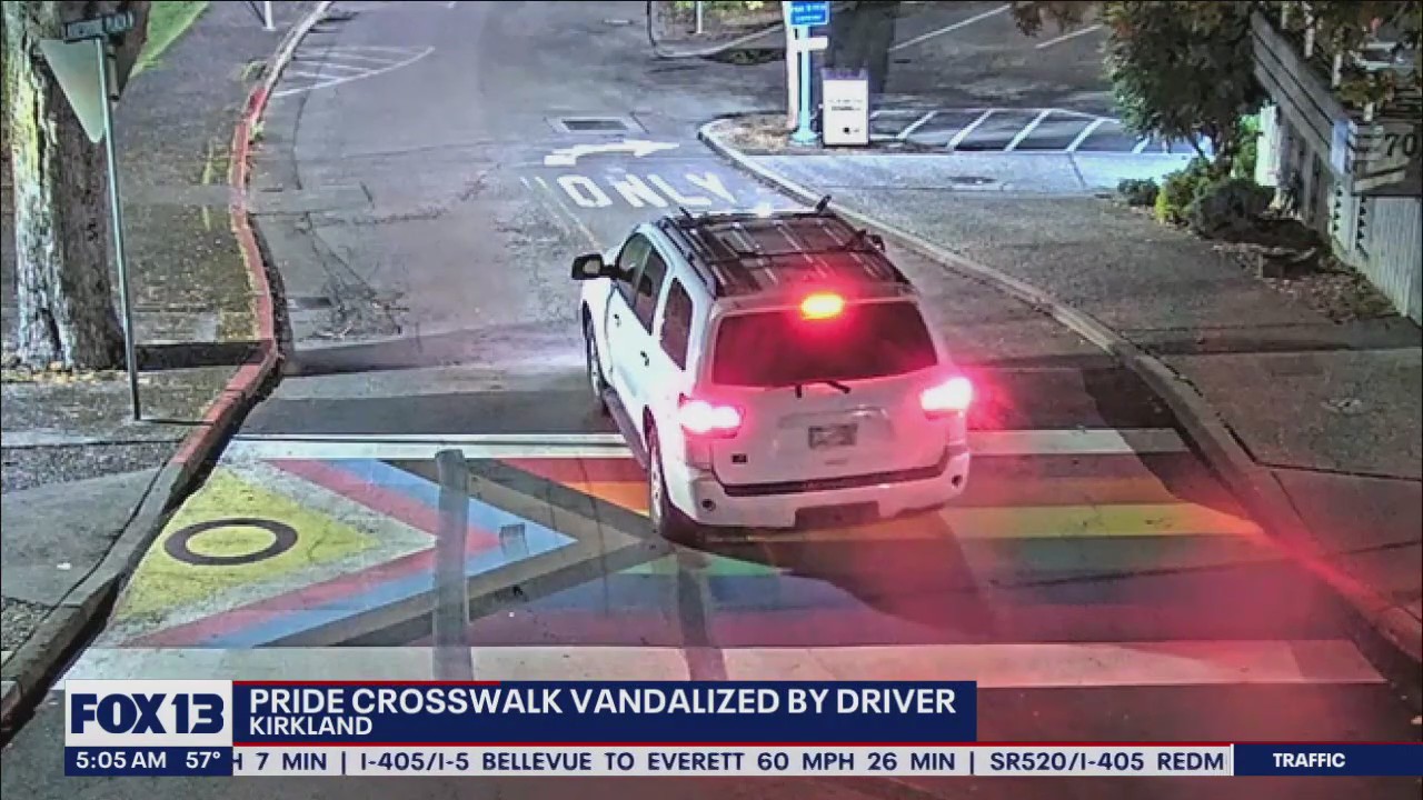 Police currently looking for suspects of vandalized pride crosswalk in Kirkland