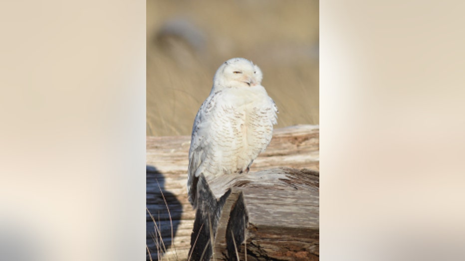 Snowy owl at Damon Point, Ocean Shores. From Kent.
