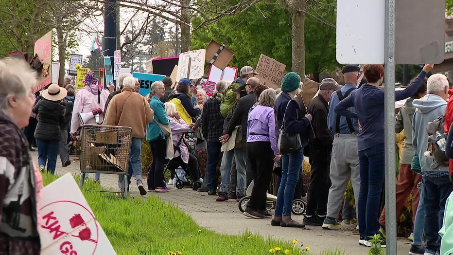 SHORELINE, Wash. - Across the country and here in Washington, another wave of rallies took over the streets. Their message: Hands off! The nationwide demonstrations being referred to as a "National Day of Action."