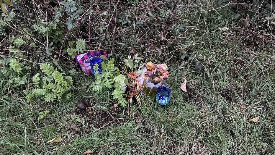 Flowers were placed in the area where Nick was killed in 2023.