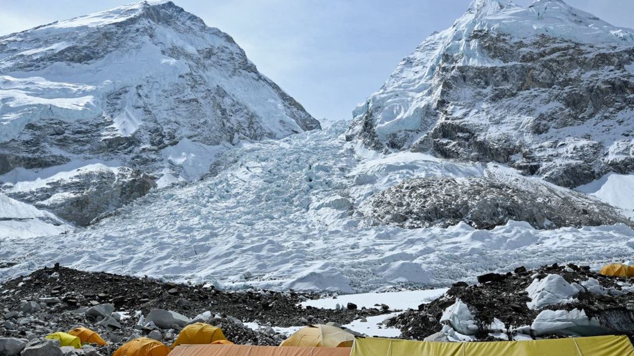Tents of mountaineers are pictured at the Everest base camp in the Mount Everest region of Solukhumbu district on May 3, 2021. (Photo by Prakash MATHEMA / AFP) (Photo by PRAKASH MATHEMA/AFP via Getty Images)