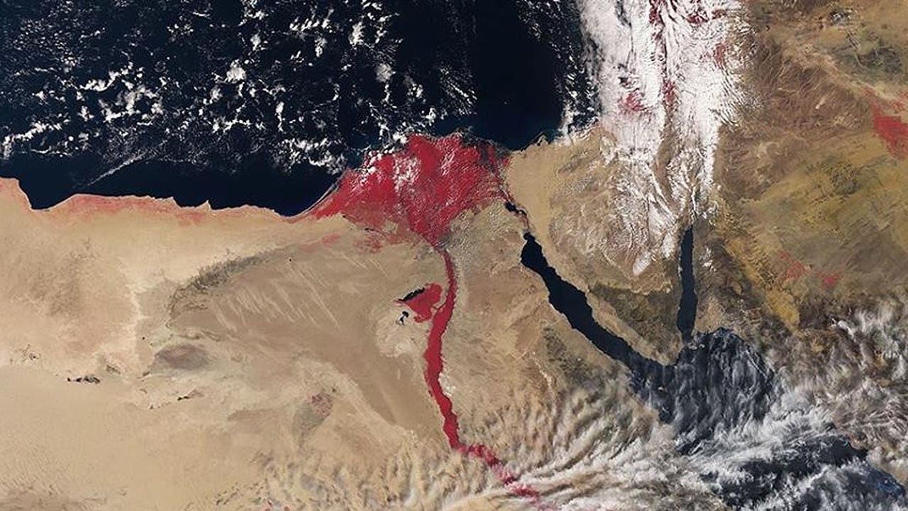 Satellite photo shows Nile River colored blood red