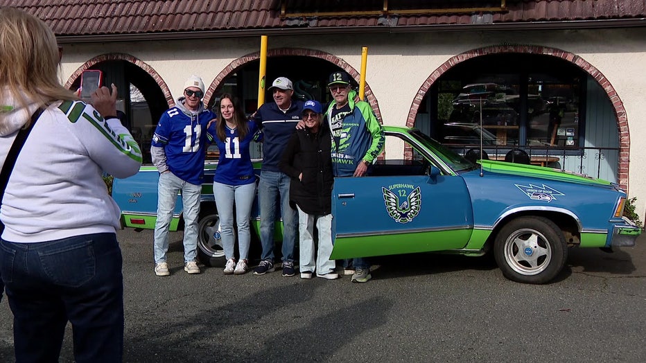 SEATTLE - Seattle Seahawks fans are showing up for the Super Bowl this weekend, and there's one 12 you can't possibly miss as he pulls up to the biggest tailgate parties in his 'Hawk Rod.'