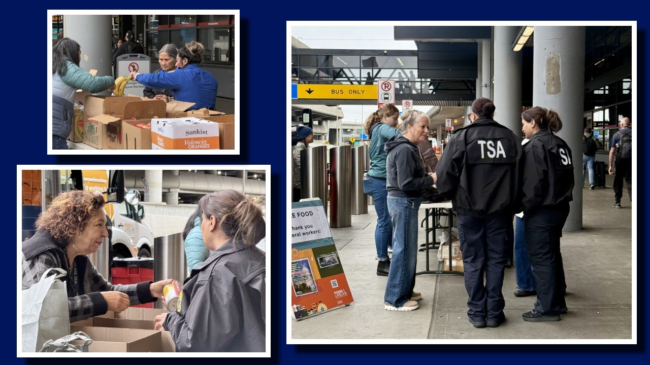 SEA airport food drive as federal workers feel the pinch of the government shutdown.