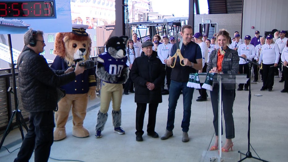On Saturday, Holland America Line held a ribbon cutting to kick off the start of its season. Then, a celebration that was complete with UW mascot Harry the Husky showing off his moves.