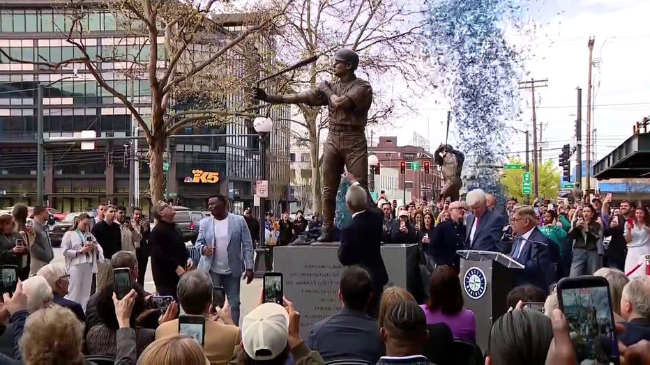 Ichiro statue unveiled outside of T-Mobile Park (with a broken baseball bat).