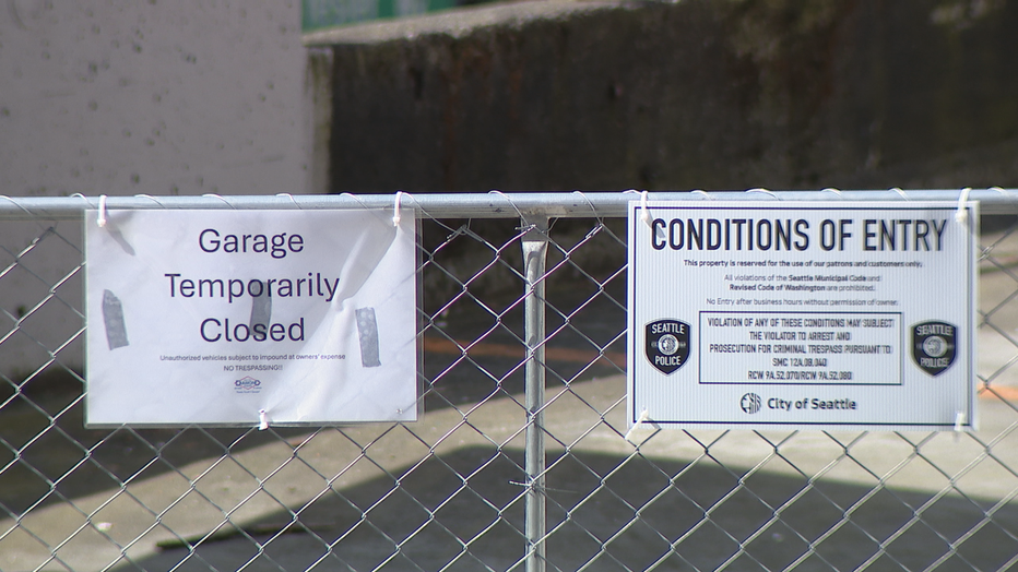 Signs around the perimeter of the structure say the closure is temporary. FOX 13 Seattle reached out to the owners of the lot for more information, but they did not respond.