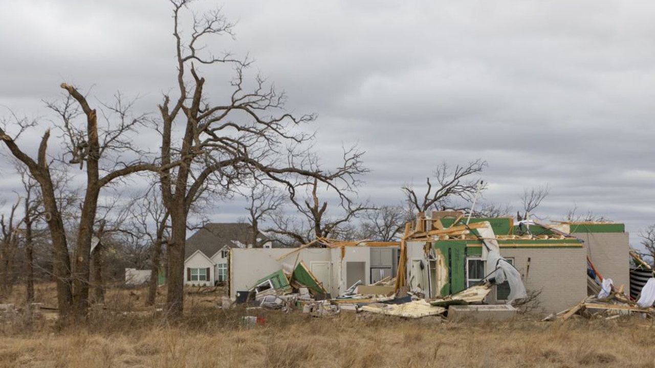 FILE-Photo taken on March 22, 2022 shows a house damaged by a tornado in Jacksboro, northern Texas, the United States. (Dan Tian/Xinhua via Getty Images)