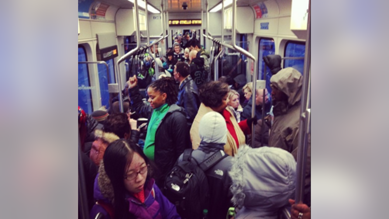 According to Gary Bruce of Sound Transit, most stations and trains are already filled. It's a fun, "festive" atmosphere on the trains, Bruce said, but very crowded.