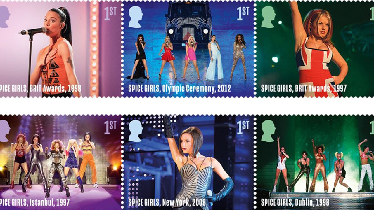 It’s only the sixth time a music group has gotten its own stamp line – and the first time Royal Mail has issued them for a female pop group. The Spice Girls join The Beatles, Pink Floyd, Queen, The Rolling Stones and Iron Maiden on the list of Royal Mail stamp honorees.