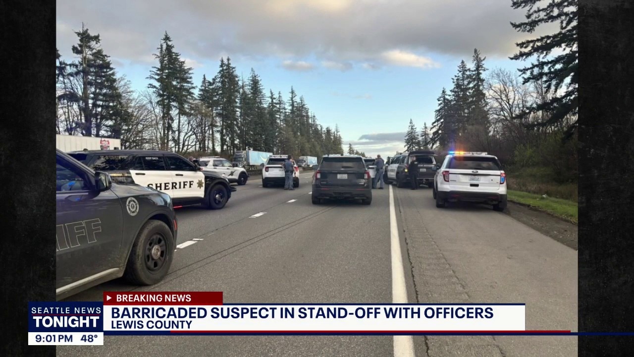 CHEHALIS, Wash. - All lanes of I-5 are fully blocked near Chehalis due to a barricaded suspect on the freeway.