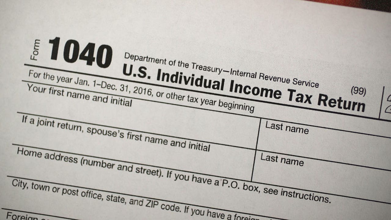 FILE IMAGE - A copy of an IRS 1040 tax form is seen at an H&R Block office on Dec. 22, 2017, in Miami, Florida. (Photo by Joe Raedle/Getty Images)