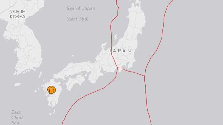 The quake struck at 9:26 p.m. near Kumamoto city on the island of Kyushu. There was no risk of a tsunami.