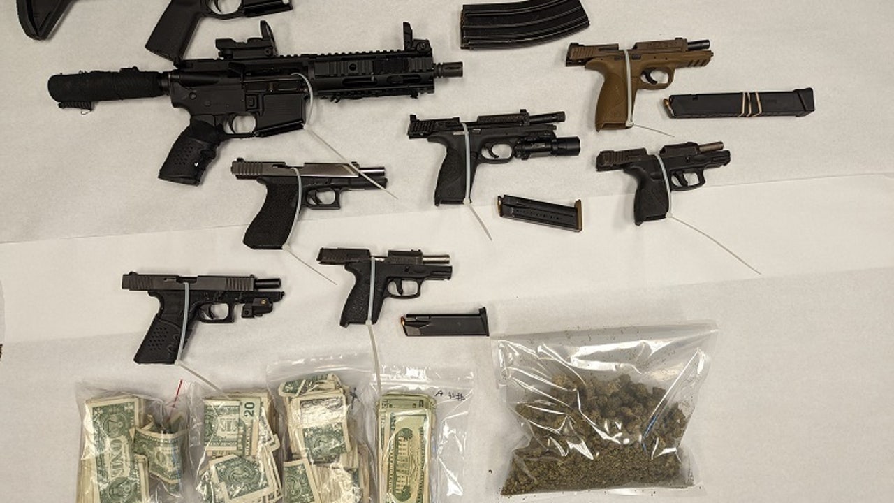 Police searched the man’s hotel room, where they recovered six handguns, two rifles, lots of cash and marijuana.
