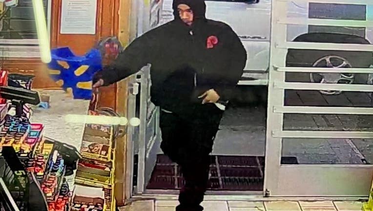 FEDERAL WAY, Wash. - Federal Way Police are asking for your help to identify this armed robbery suspect in the black hoodie with a red skull logo on the front of it.