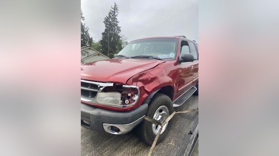 The truck or van has damage on the front left side and the left blinker/headlight cover is broken.WSP detectives request assistance to locate the suspect vehicle.