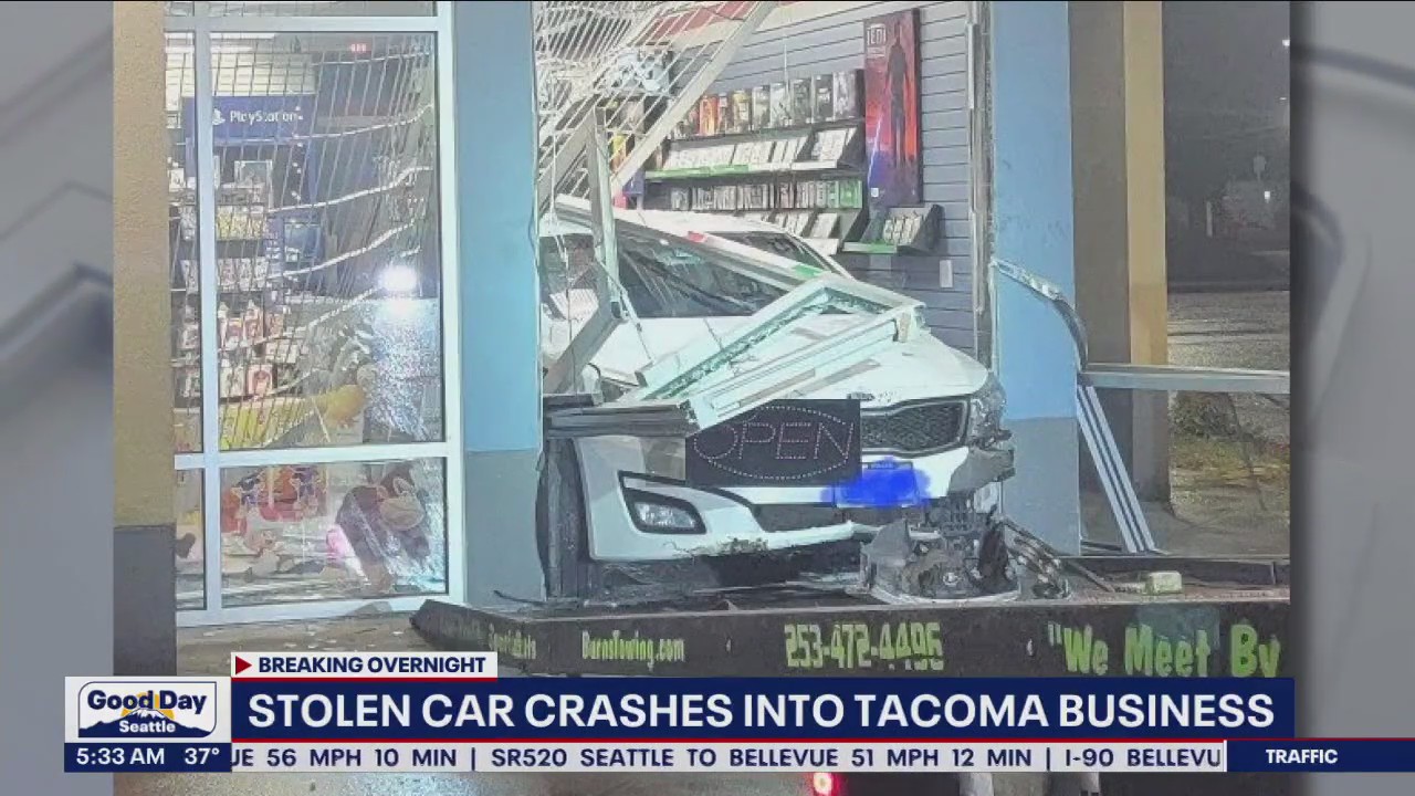 TACOMA, Wash. - Tacoma police are investigating after a suspects in stolen car crashed into a GameStop on Tuesday morning.