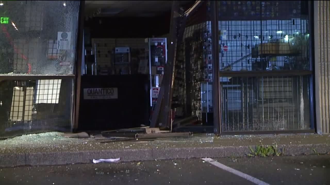 The front doors of Quantico Tactical were bashed in around 5:00 a.m. Tuesday.