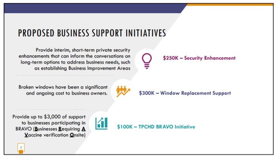 The city also plans to invest $100,000 of the ARPA money toward businesses who are voluntarily checking proof of vaccine, part of the BRAVO initiative.