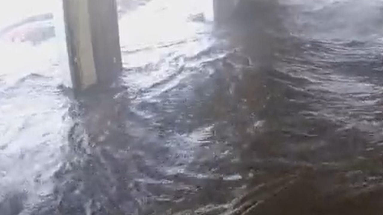 Security footage from the fire station captured the time-lapse video, showing just how swift and intense the rainfall and storm surge have been in the area.