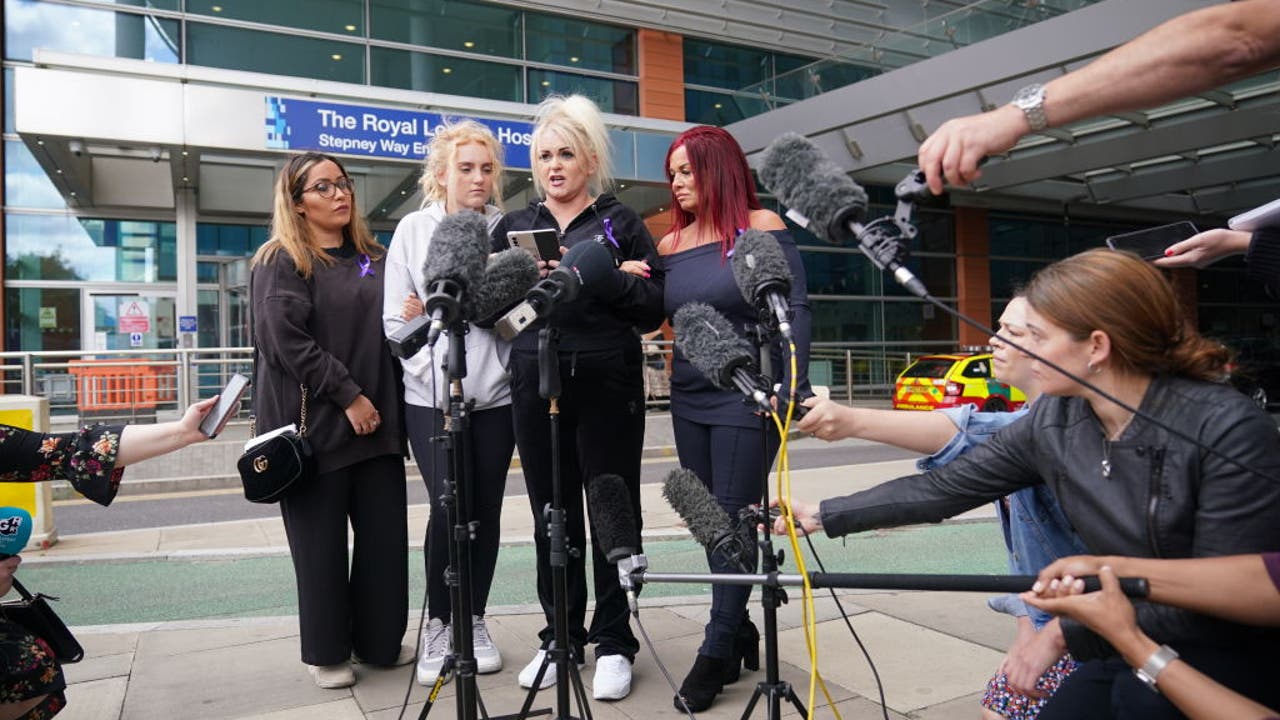 Archie Battersbee's mother, Hollie Dance, (centre-right) speaking outside the Royal London Hospital in Whitechapel, east London, after the High Court judgement on the future of the 12-year-old boy at the centre of a life-support treatment dispute aft