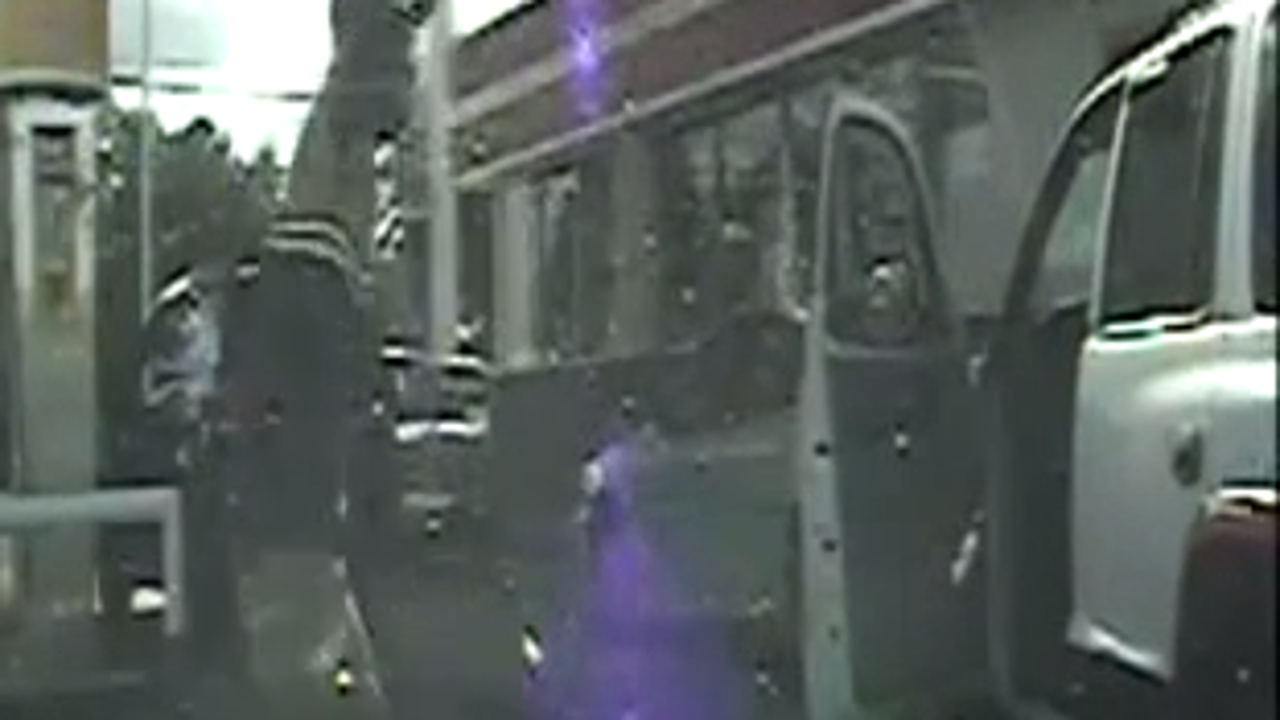 In the video, Groubert asks for Jones' license and Jones appears to bend into his car to reach for it. Groubert then fires several times at Jones, hitting him in the hip.